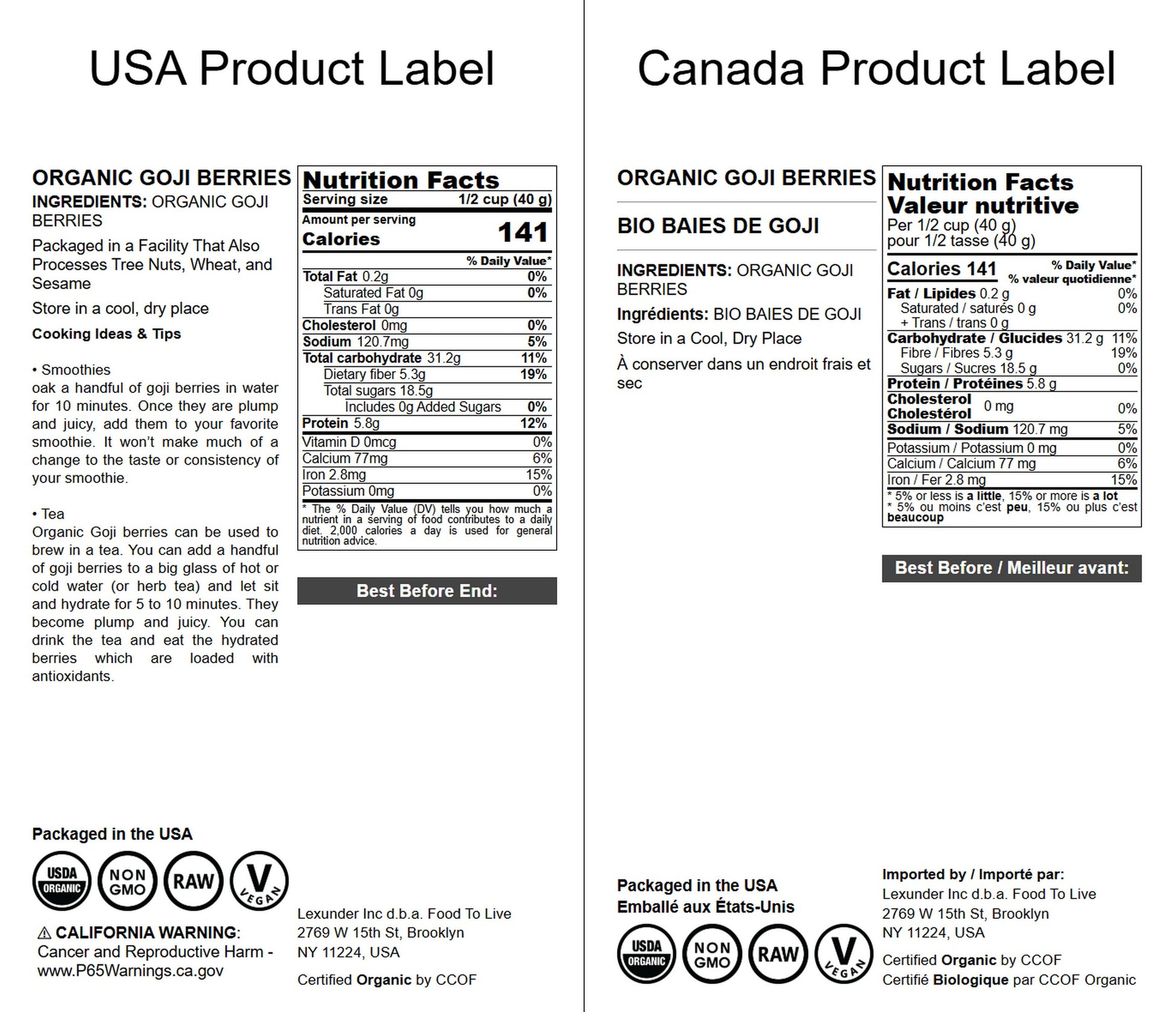 Organic Goji Berries - Sun Dried, Large and Juicy, Non-GMO, Raw, Vegan, Sirtfood, Bulk - by Food to Live