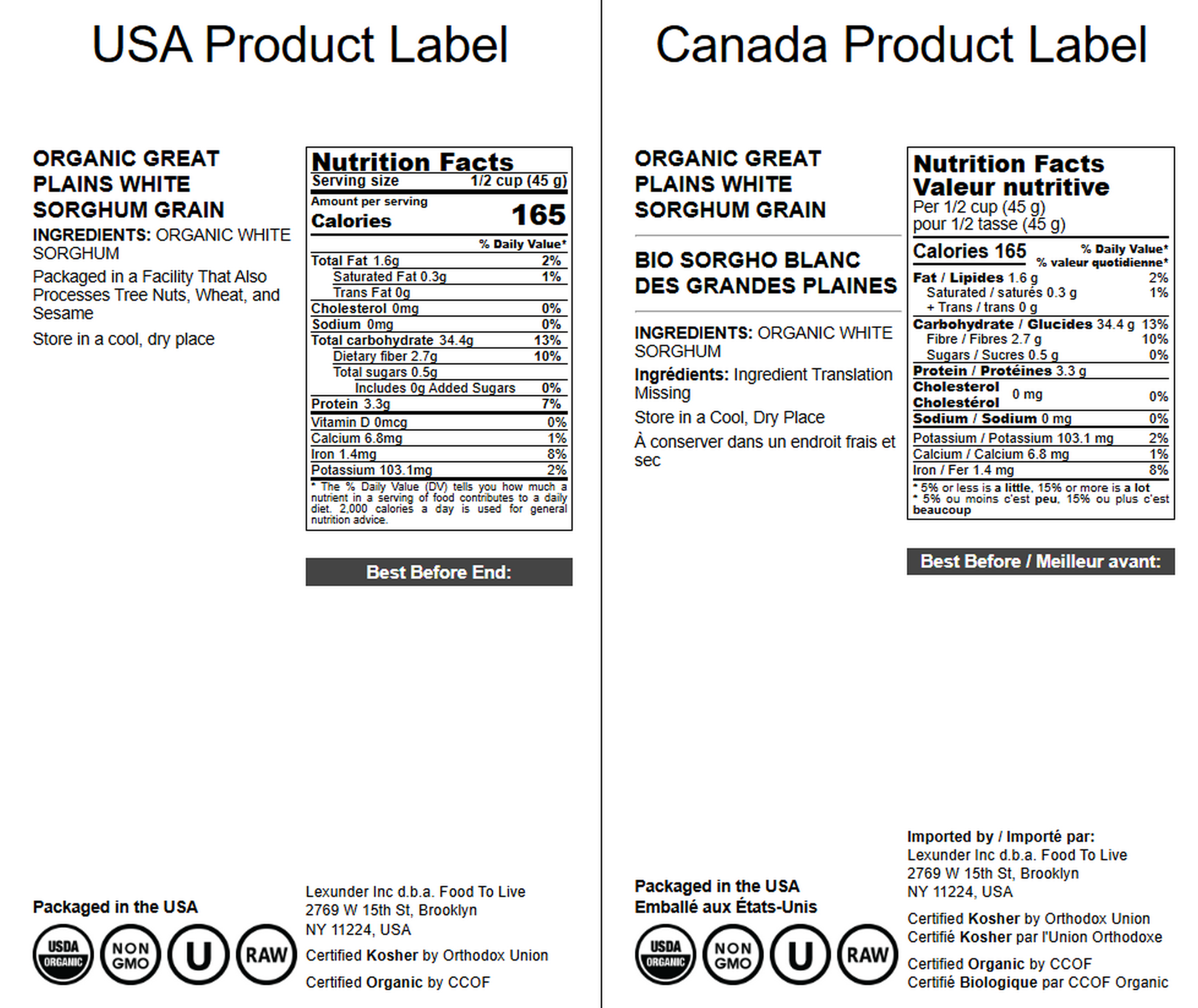 Organic Great Plains White Sorghum Grain - by Food to Live