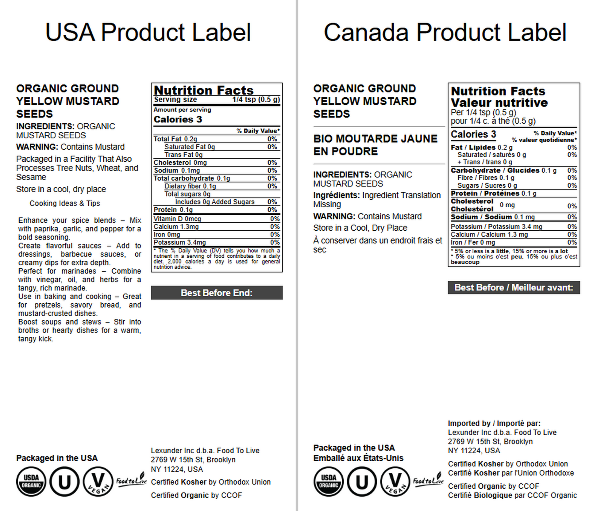 Organic Ground Yellow Mustard Seeds - by Food To Live