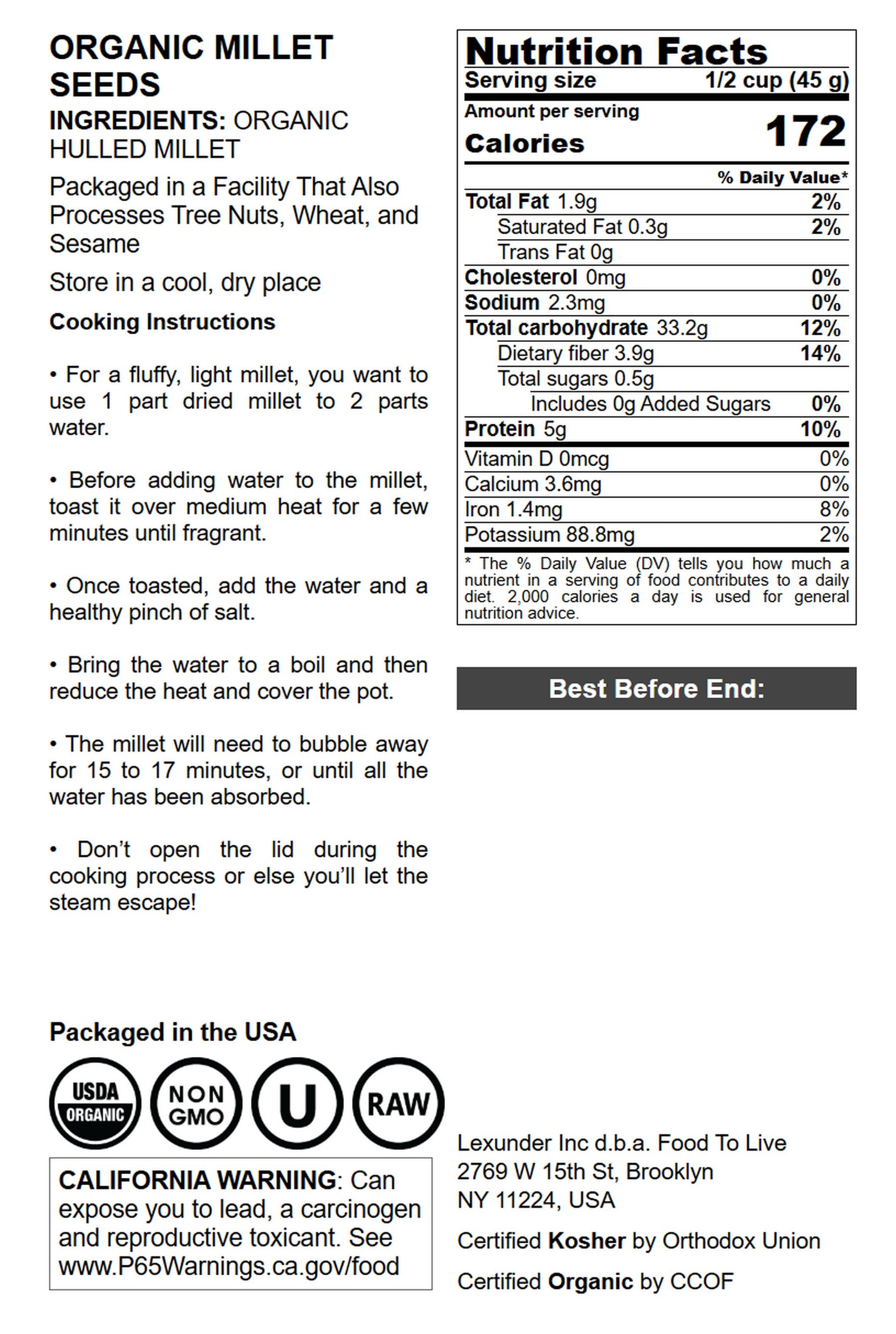 Organic Hulled Millet - by Food to Live