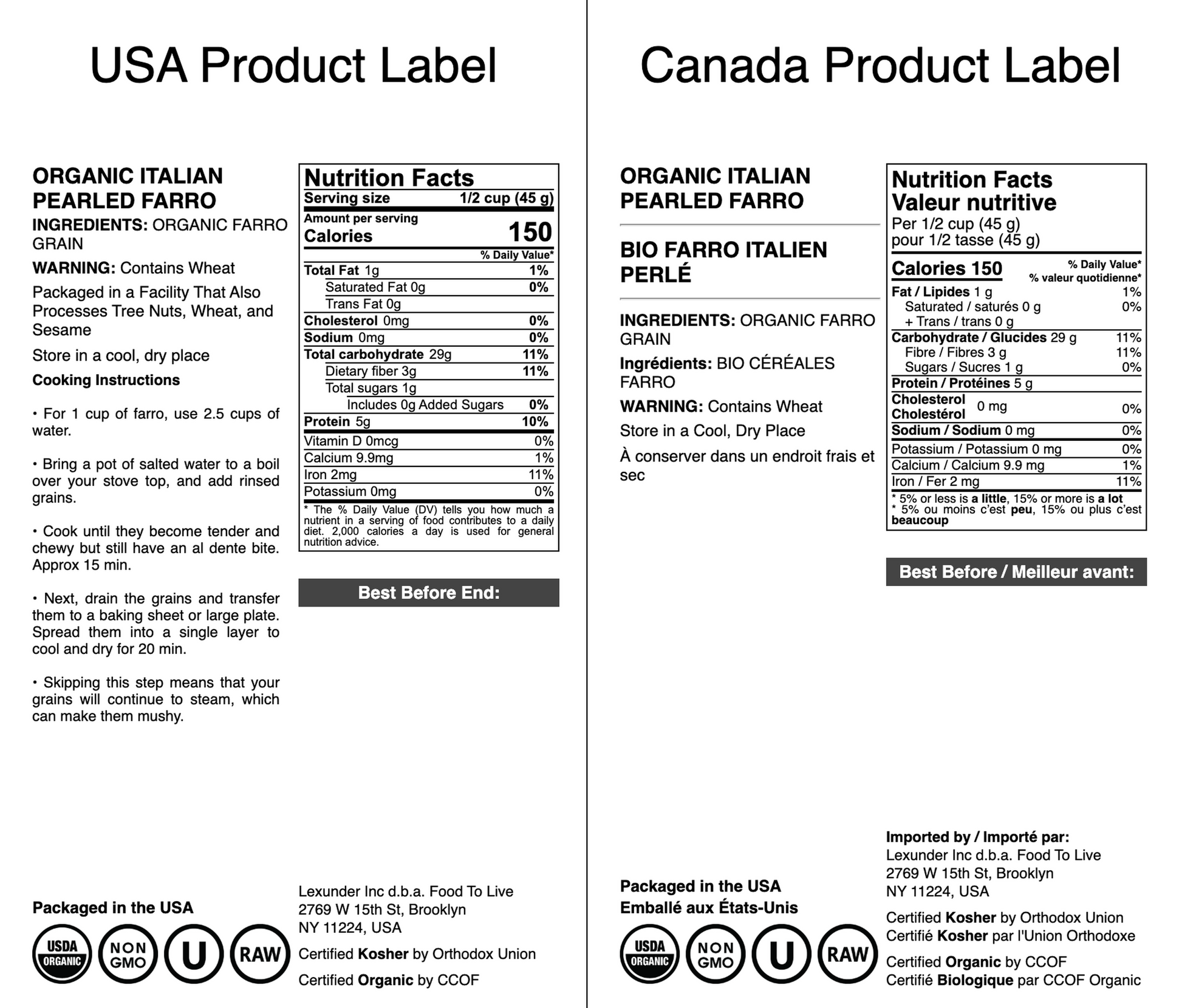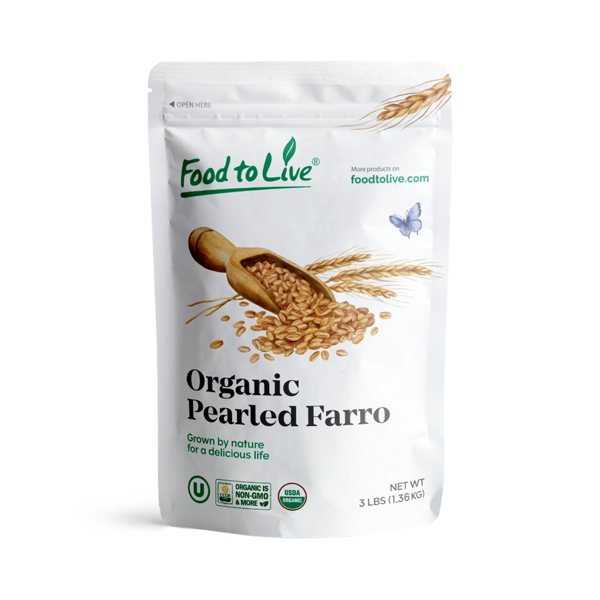 Organic Italian Pearled Farro - Non-GMO, Kosher, Vegan, Grain in Bulk, Good Source of Fiber - by Food to Live