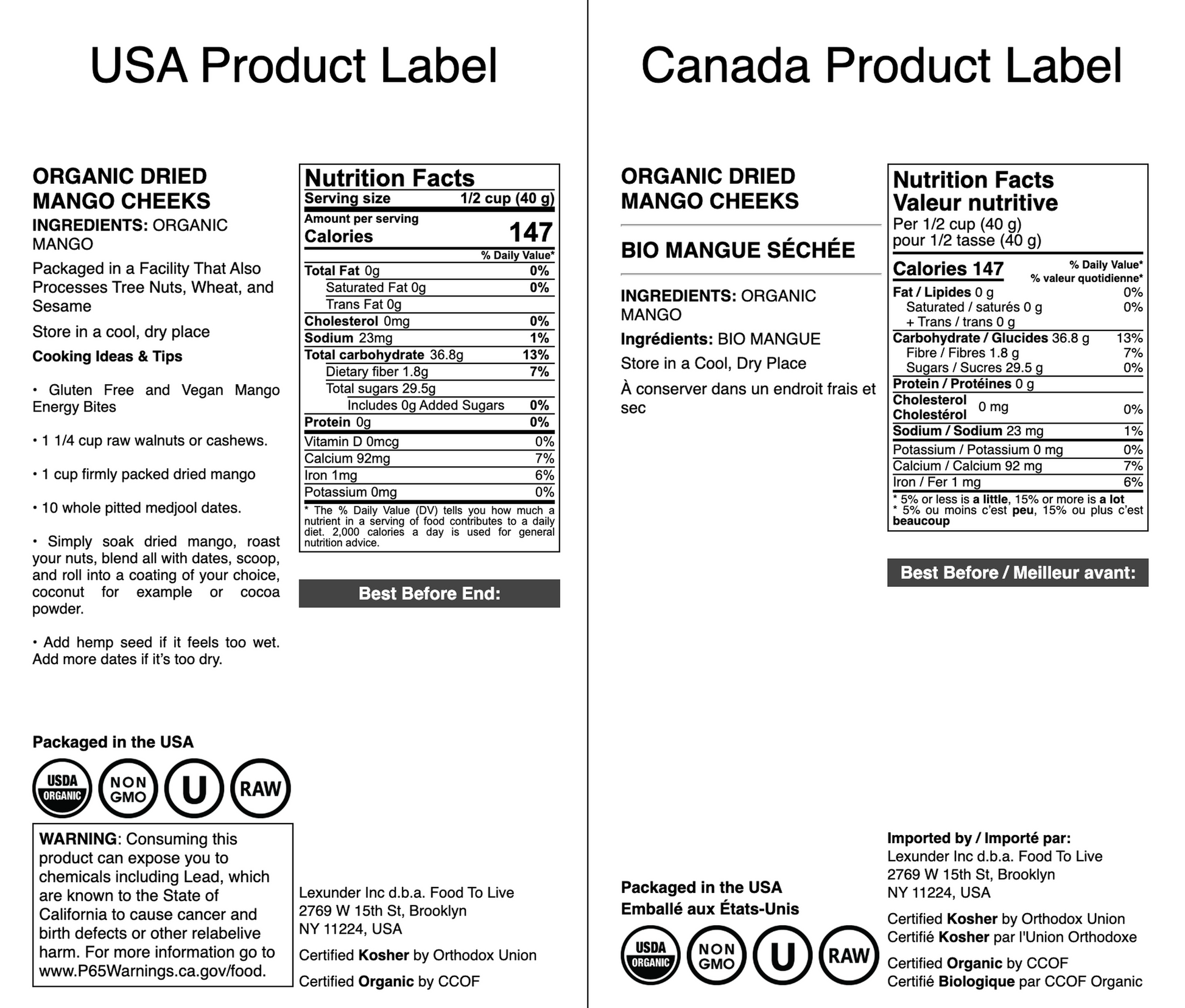 Organic Mango Cheeks - Dried, Non-GMO, Kosher, Unsulphured, Unsweetened, Bulk - by Food to Live