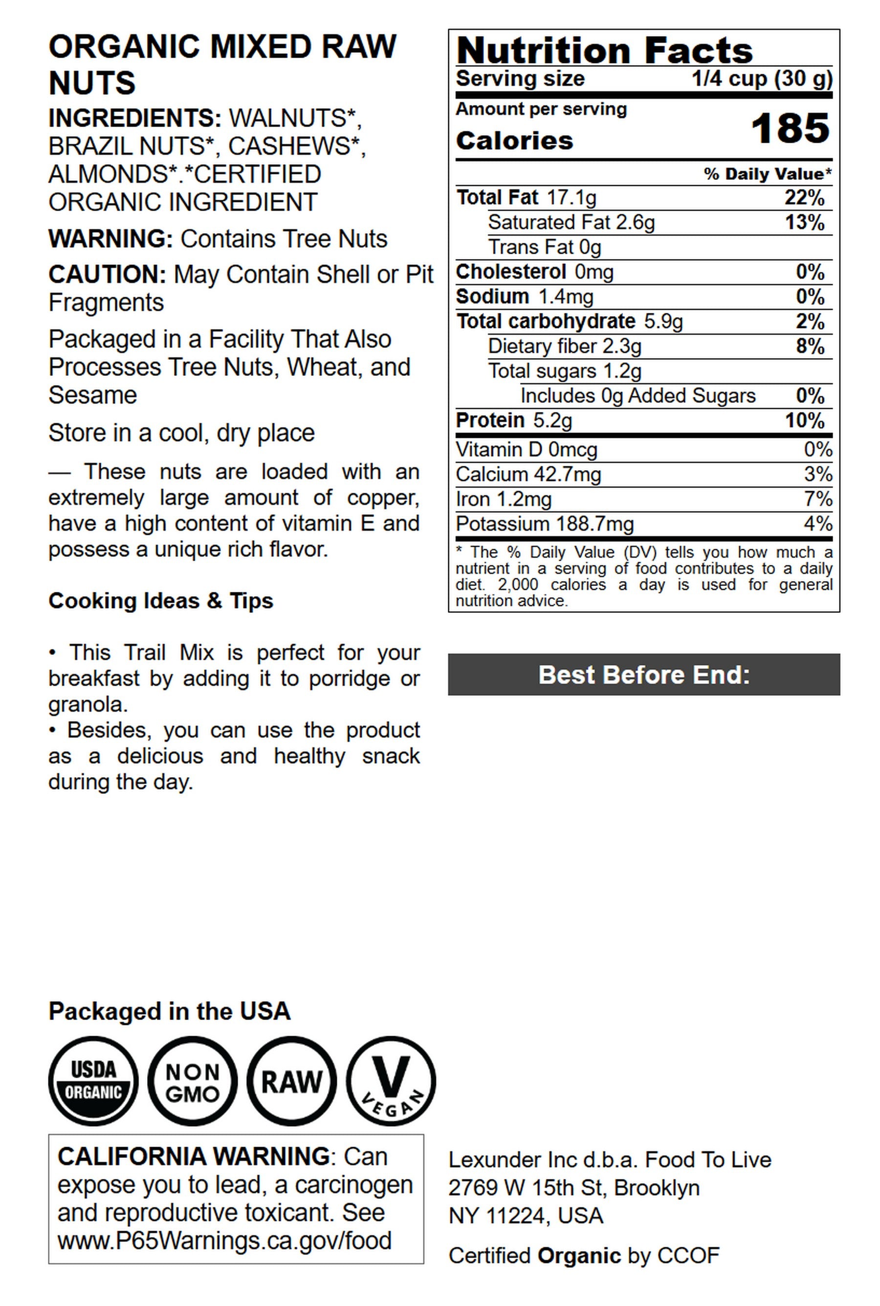 Organic Mixed Raw Nuts - by Food To Live