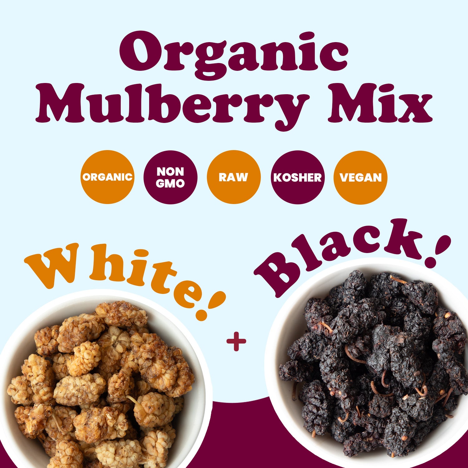 Organic Mulberry Mix - White and Black Berries, Dried Superfood Blend