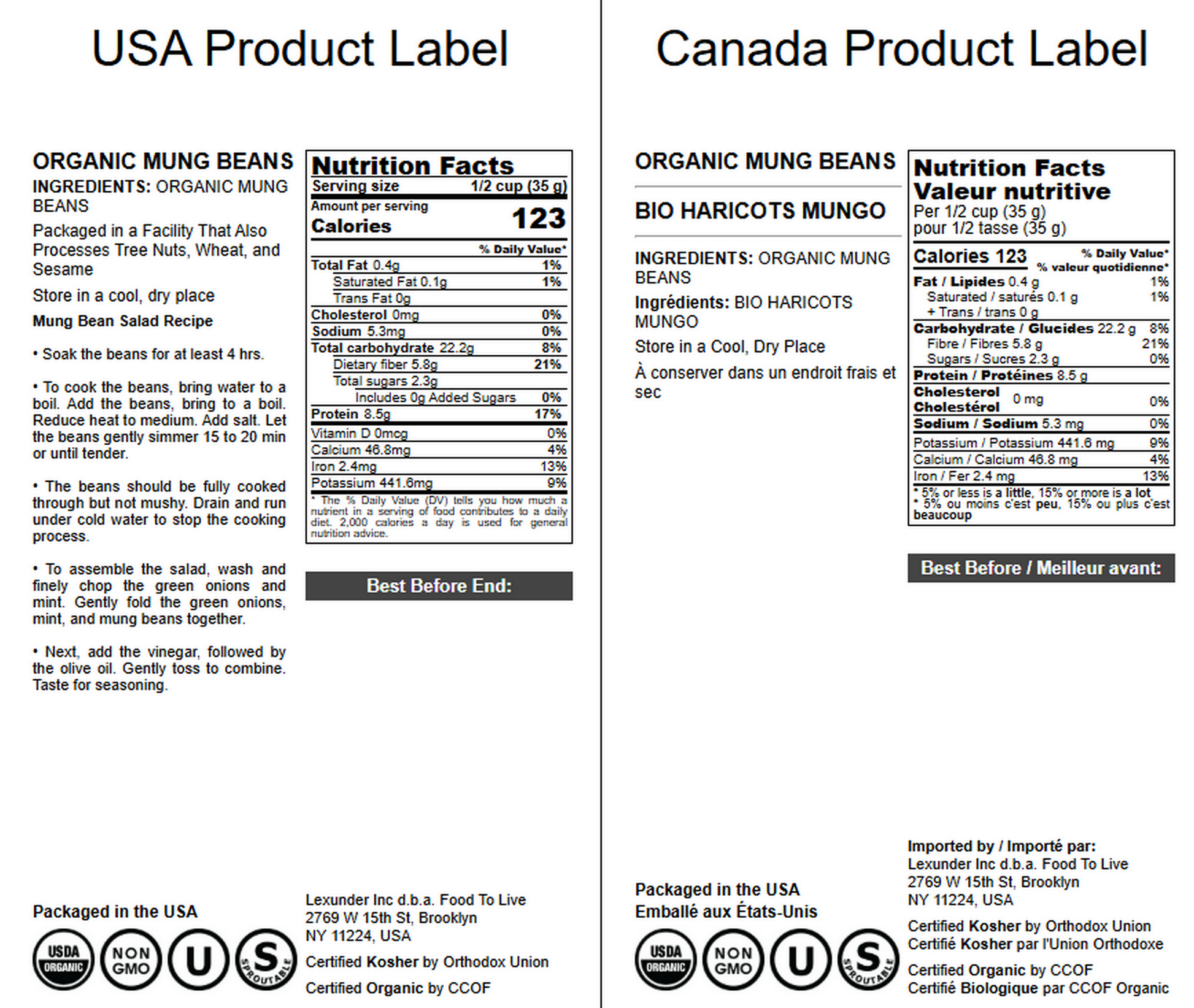 Organic Mung Beans - Sprouting, Non-GMO, Kosher, Sirtfood, Bulk - by Food to Live