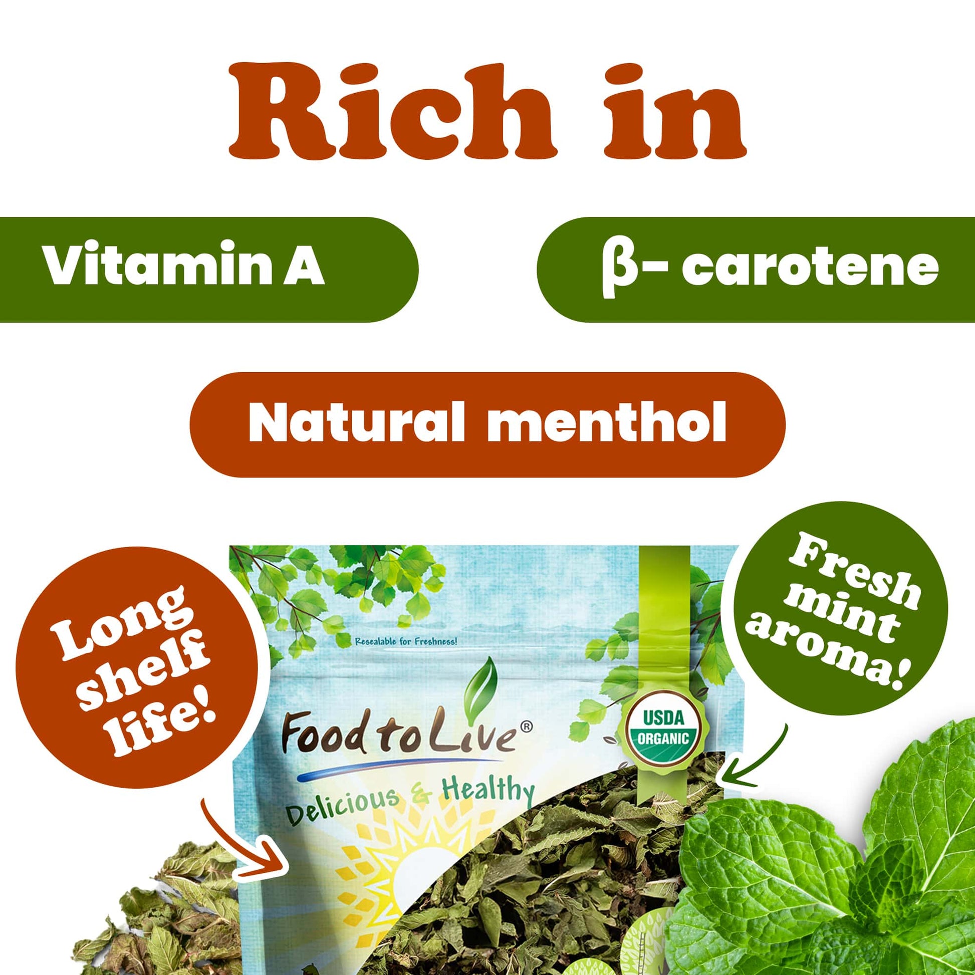 - NUTRIENT-RICH: Organic Peppermint Leaves from Food to Live is a good source of Vitamin A, beta-carotene, and natural menthol.