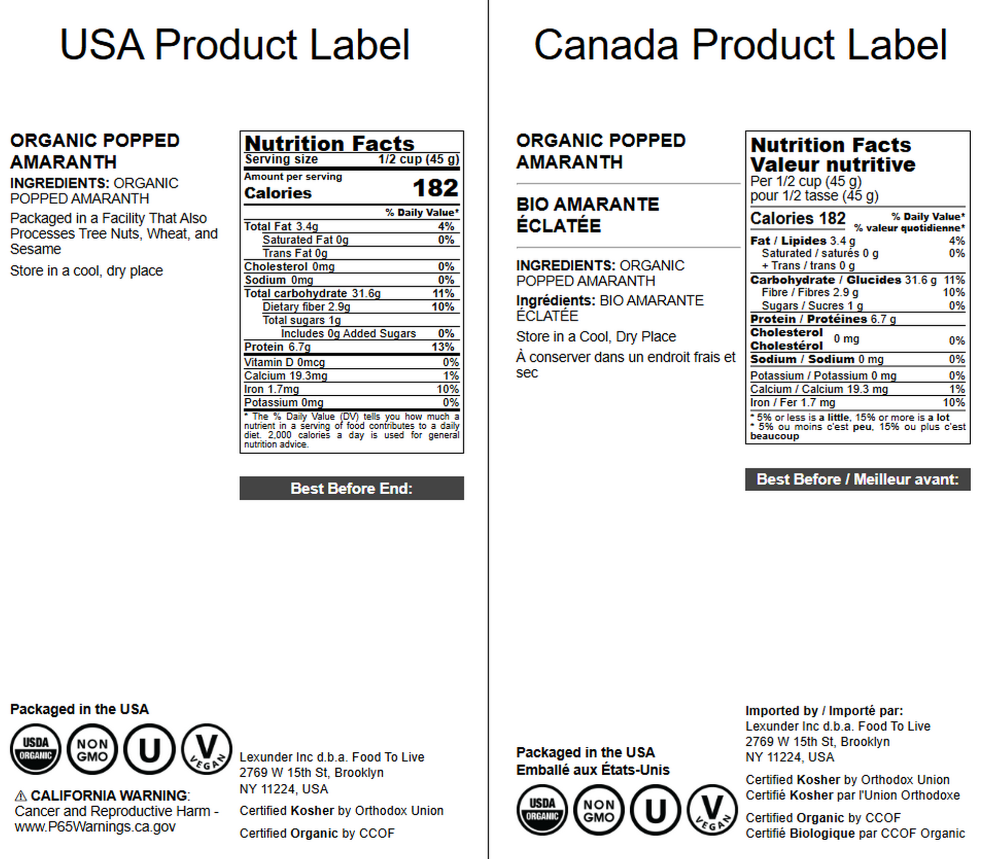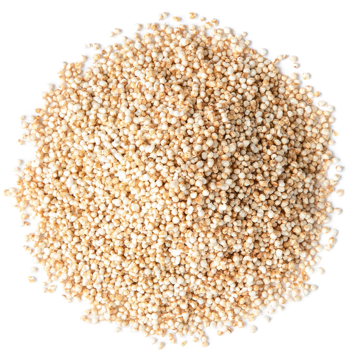 Organic Puffed Amaranth Seeds are made by heating up raw dry seeds. When heated they pop becoming puffy on the inside, yet retaining a pleasant crunch. Due to minimal processing, Organic Popped Amaranth Grain is as nutritious as its raw counterpart. It's a good plant-based source of protein and fiber. Amaranth is also rich in calcium and iron.