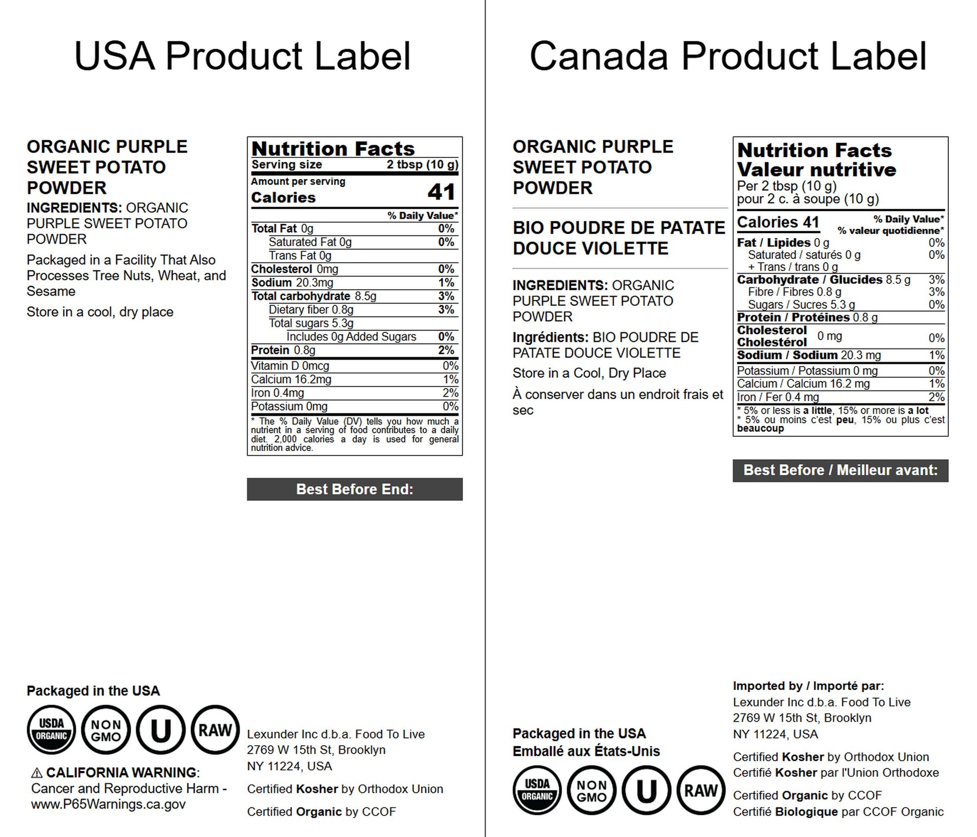 Organic Purple Sweet Potato Powder by Food to Live is made from organic dried and ground flesh of raw purple sweet potatoes. Purple sweet potatoes are a variety of sweet potato that has a purple-colored flesh, which is incredibly rich in anthocyanins, a type of antioxidant. This product is a single-ingredient powder, which contains only Organic Powdered Purple Sweet Potato; it has no additives or preservatives and is fat and cholesterol-free. Food to Live Organic Purple Sweet Potato Powder is raw, Non-GMO, and suitable for vegans.