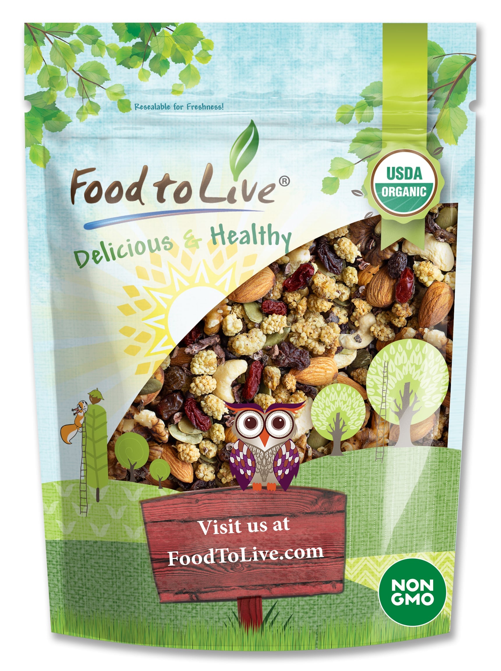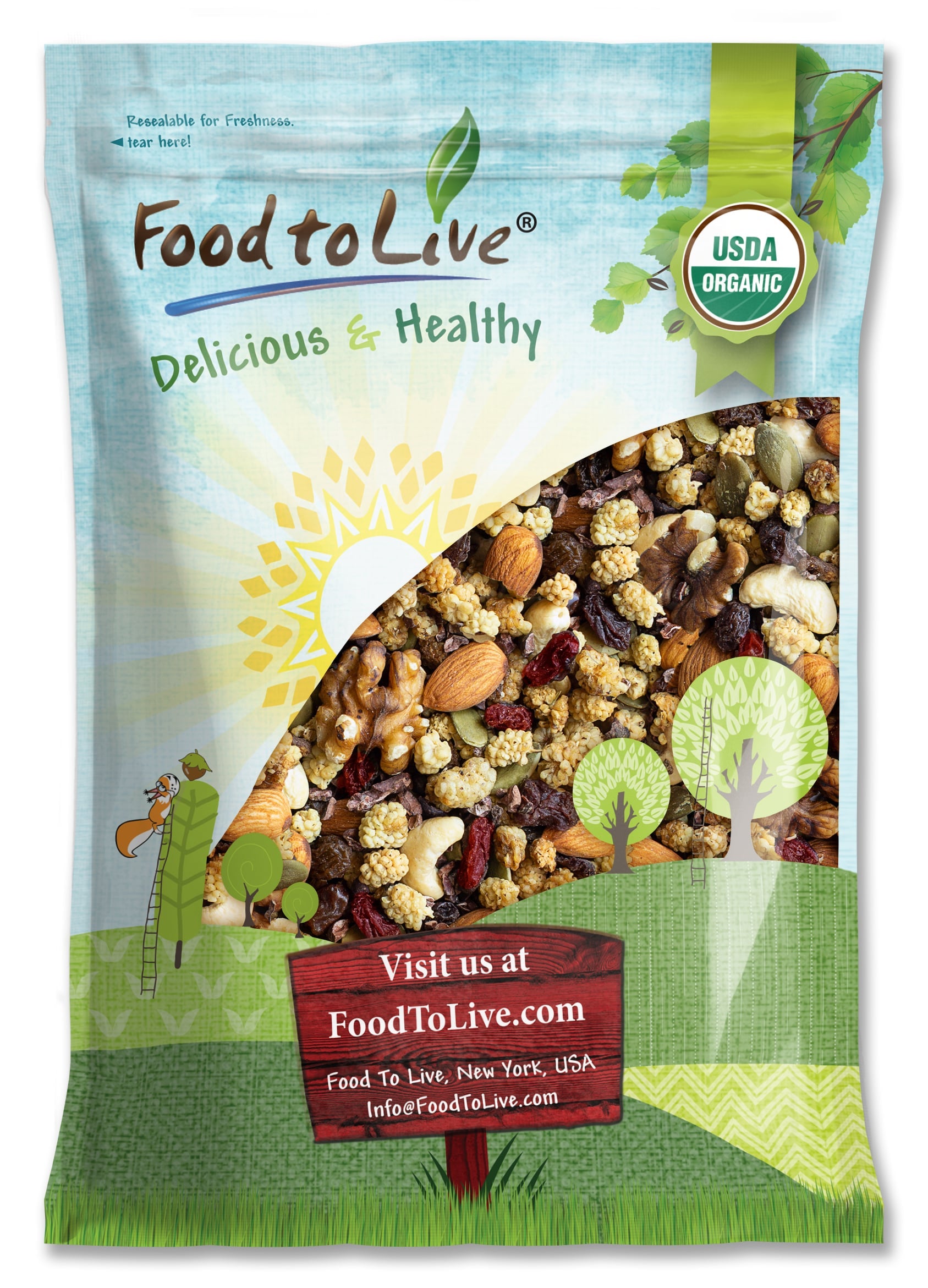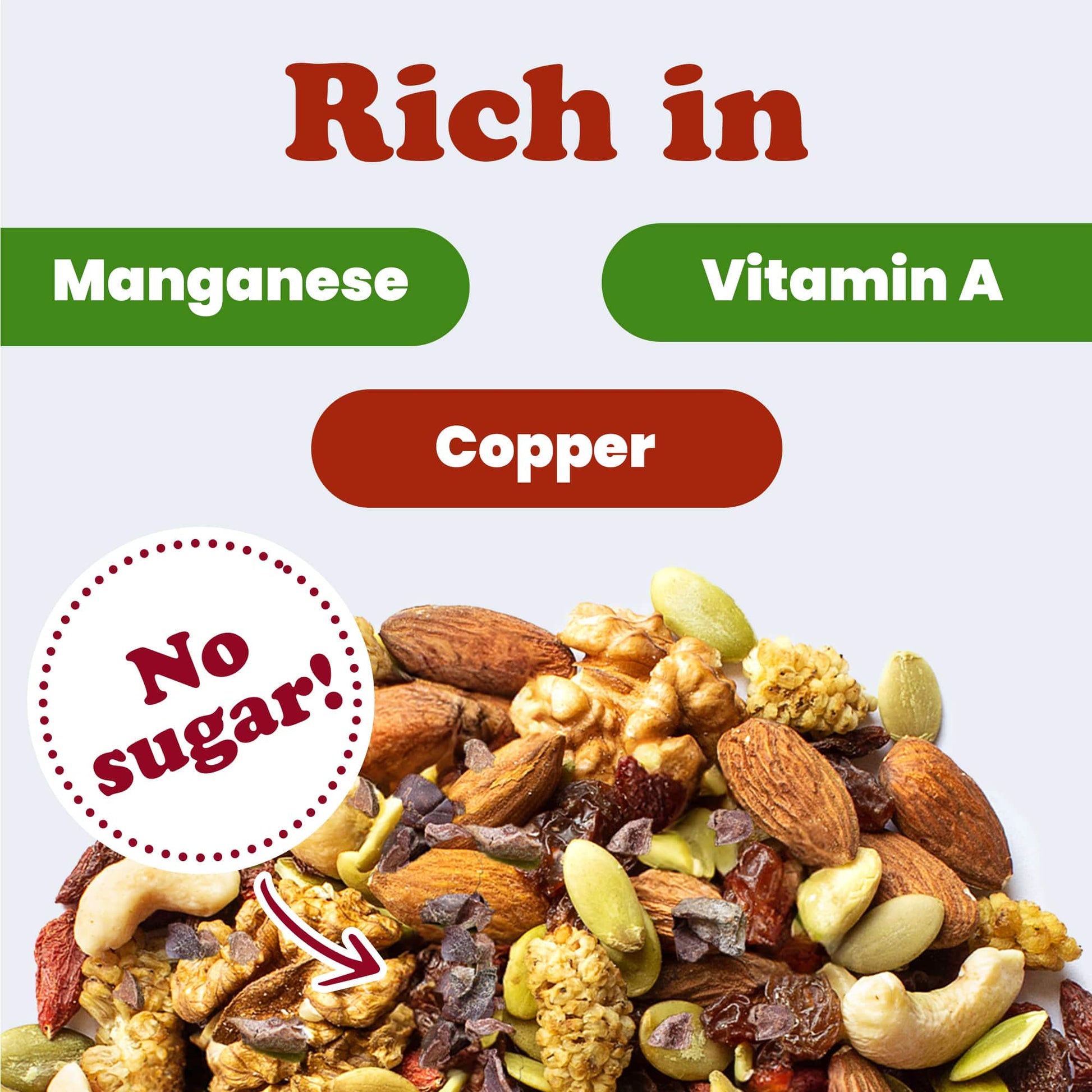 Organic Raw Munchies Snack Mix — Non-GMO,.Cacao Nibs, Raisins, Almonds, Cashews, Walnuts, Goji Berries, Mulberries, Pumpkin Seeds. Kosher