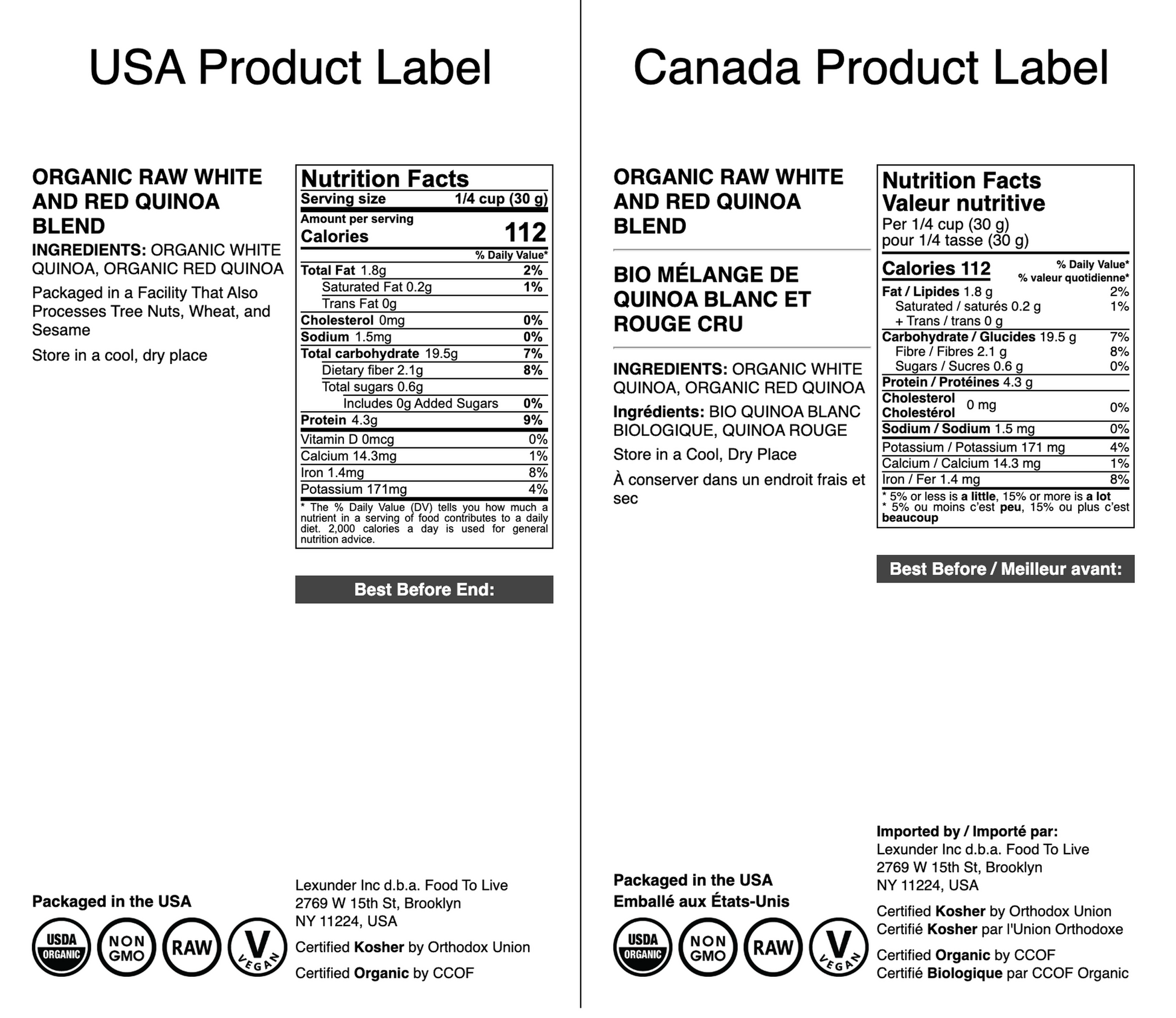 Organic Raw White and Red Quinoa Blend - by Food To Live