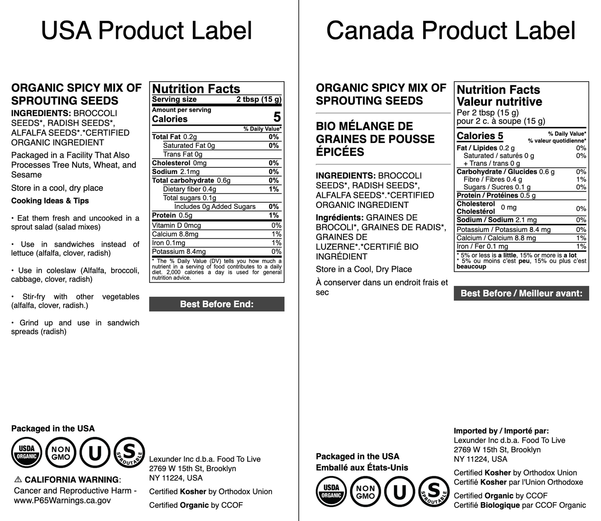 Organic Spicy Mix of Sprouting Seeds - by Food To Live