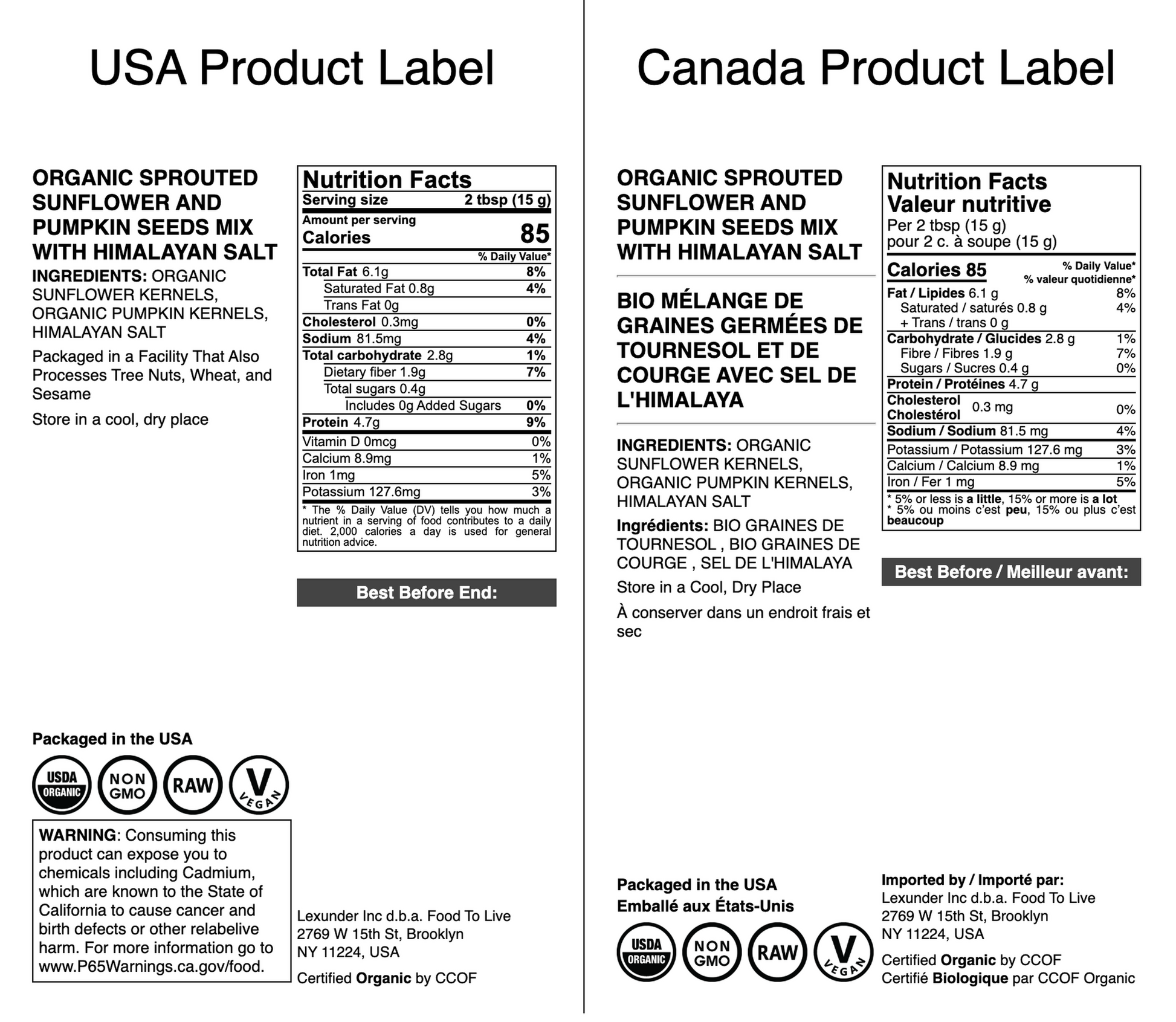Organic Sprouted Sunflower and Pumpkin Seed Mix with Himalayan Salt - by Food to Live