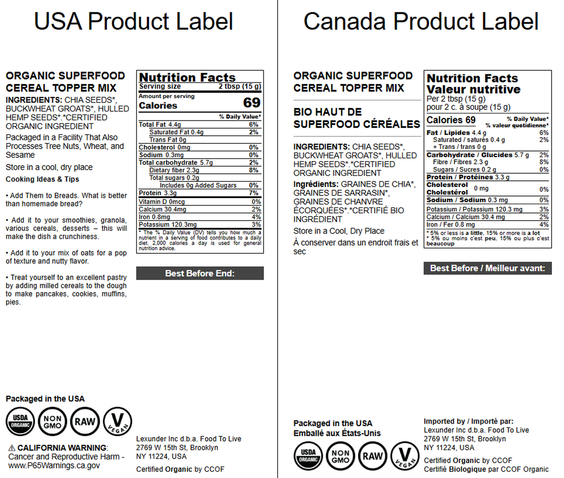 You can add the topper to your granola, various cereals, yogurts, smoothies. Organic Superfood Cereal Topper will give the dish a crunchiness.
