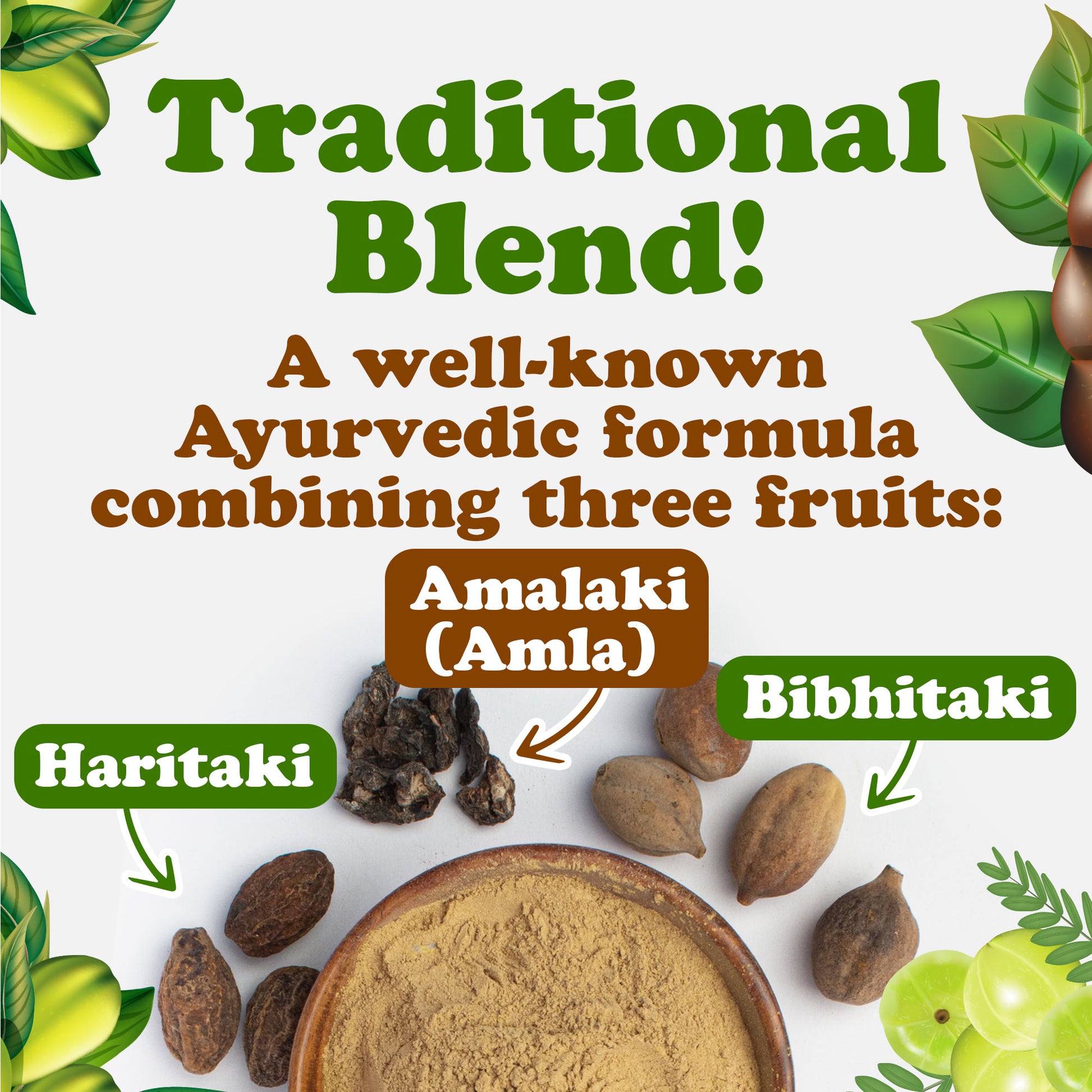 Triphala is rich in essential nutrients that support overall wellness. Amla is a natural source of vitamin C and antioxidants, while Haritaki and Bibhitaki contribute fiber, tannins, and beneficial plant compounds. This combination makes Triphala a nutrient-dense addition to smoothies, teas, and wellness recipes. It is naturally low in calories and contains no artificial additives, ensuring a pure and wholesome product.