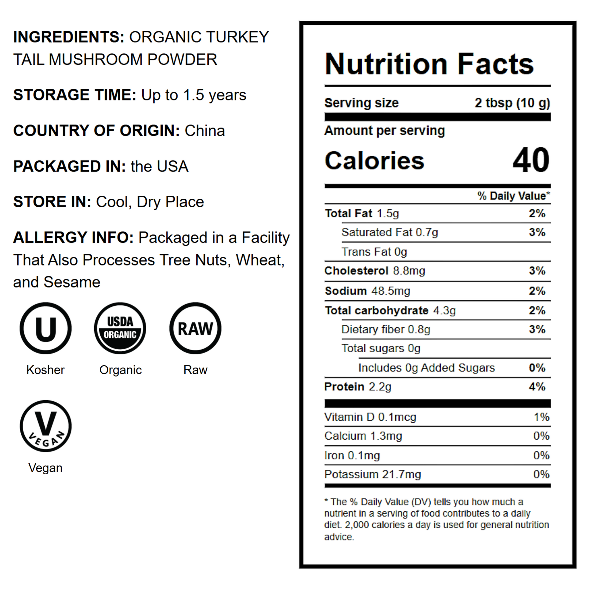 - 100% PURE and ORGANIC: Crafted from premium certified organic turkey tail mushrooms. Non-GMO, Vegan, and Kosher. No additives or preservatives.