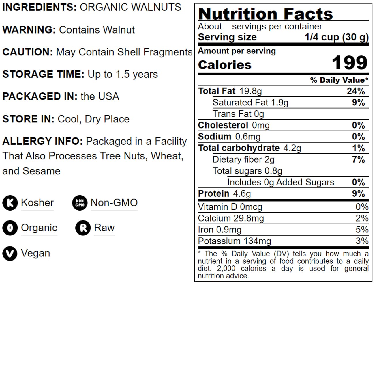 - ️HANDY BAGS, MADE IN USA: Organic Walnut Pieces are proudly grown and packaged in the USA. These nuts are packaged in handy resealable Food to Live bags that are super convenient to store.