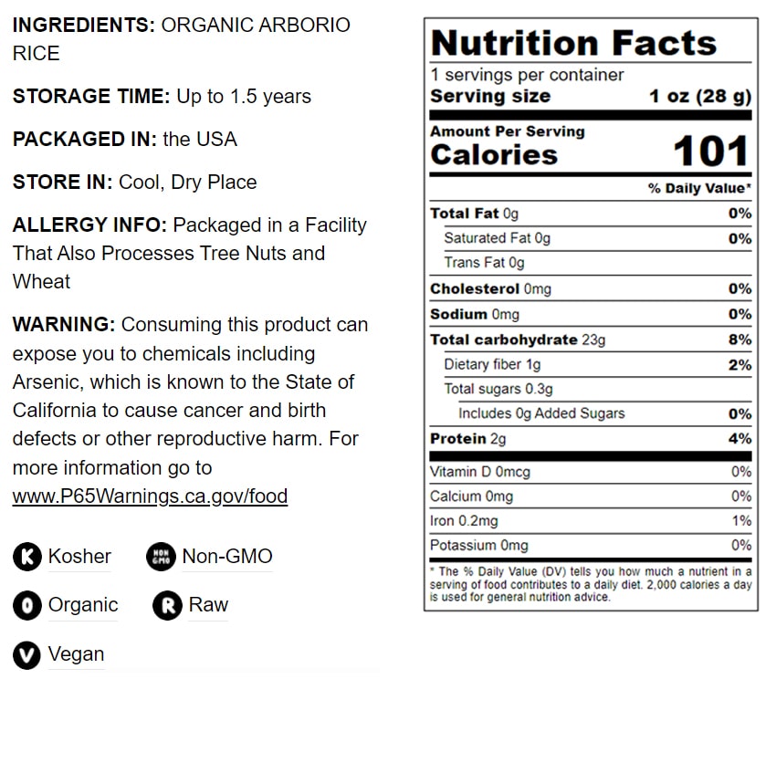 WARNING: Consuming this product can expose you to chemicals including Arsenic (inorganic arsenic compounds) which is known to the State of California to cause cancer. For more information go to www.P65Warnings.ca.gov/food