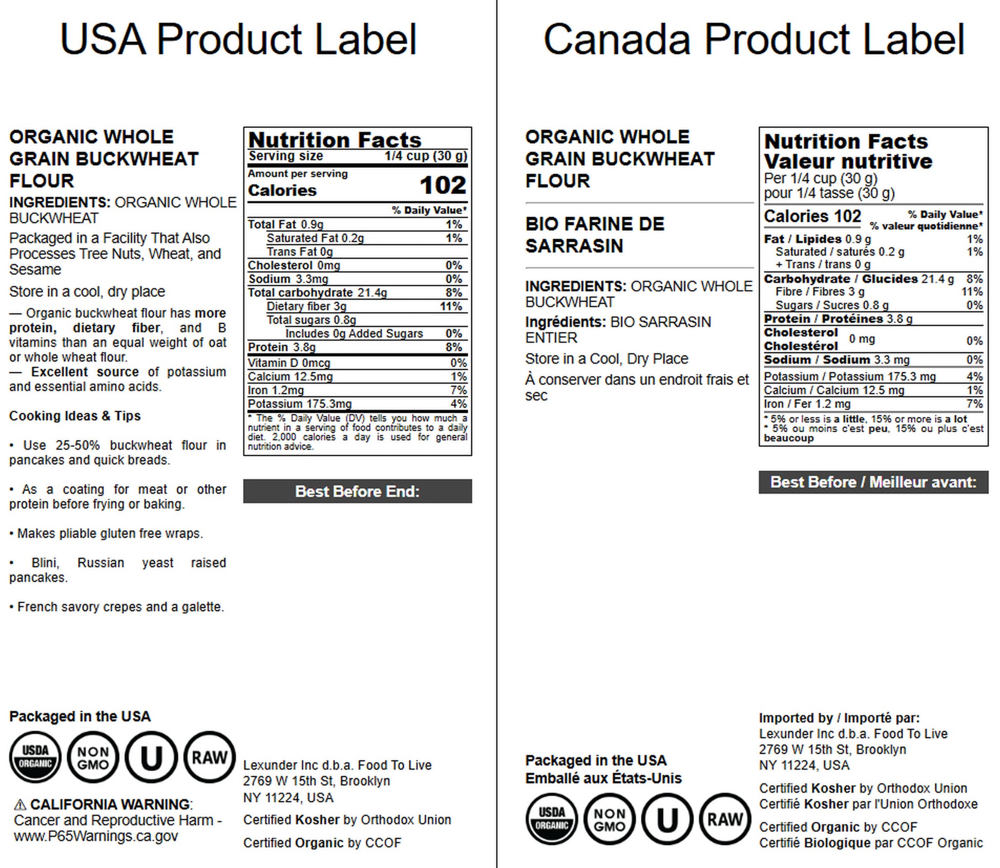 Organic Whole Grain Buckwheat Flour - by Food To Live