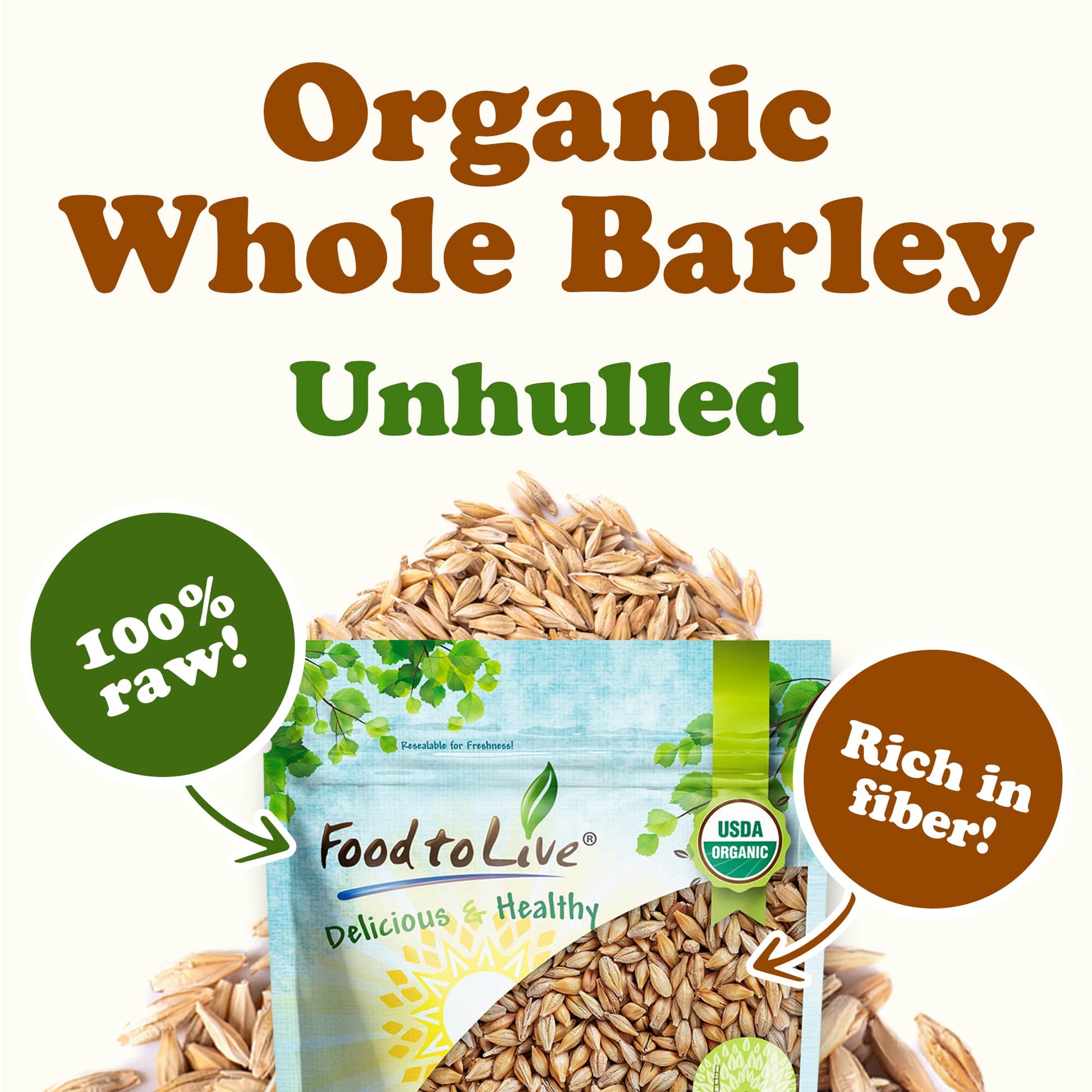 - 100% ORGANIC WHOLE UNHULLED BARLEY: Premium seeds with the husk intact, delivering natural flavor and texture for a variety of recipes from Food to Live.