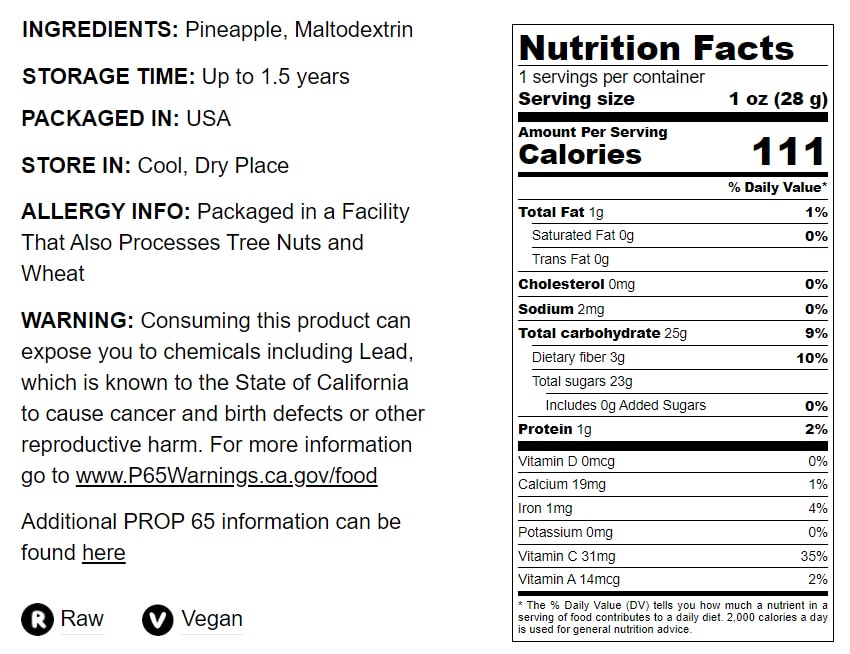 Pineapple Juice Powder, - Made from Raw Dried Fruit, Unsulfured, Vegan, Bulk, Great for Baking, Juices, Smoothies, Yogurts, and Instant Breakfast Drinks, No Sulphites - by Food to Live