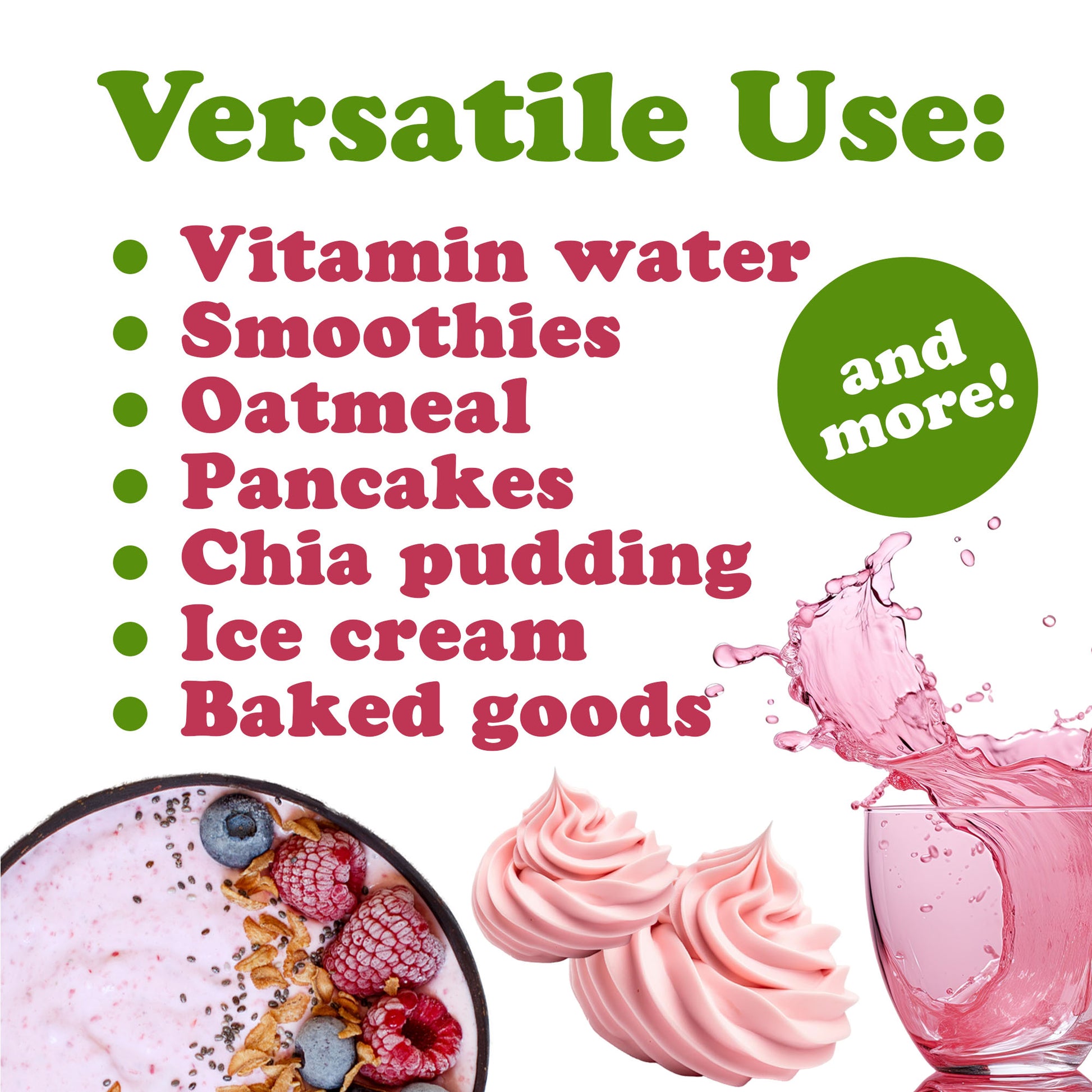 This versatile powder enhances both sweet and savory dishes. Stir it into smoothies, yogurt, or oatmeal for a fruity boost, or mix it into homemade energy bars and baked goods. It works wonderfully as a natural flavoring for dressings, marinades, and sauces. You can also blend it with water or juice to create a refreshing pomegranate drink or sprinkle it over desserts for a pop of color and flavor.