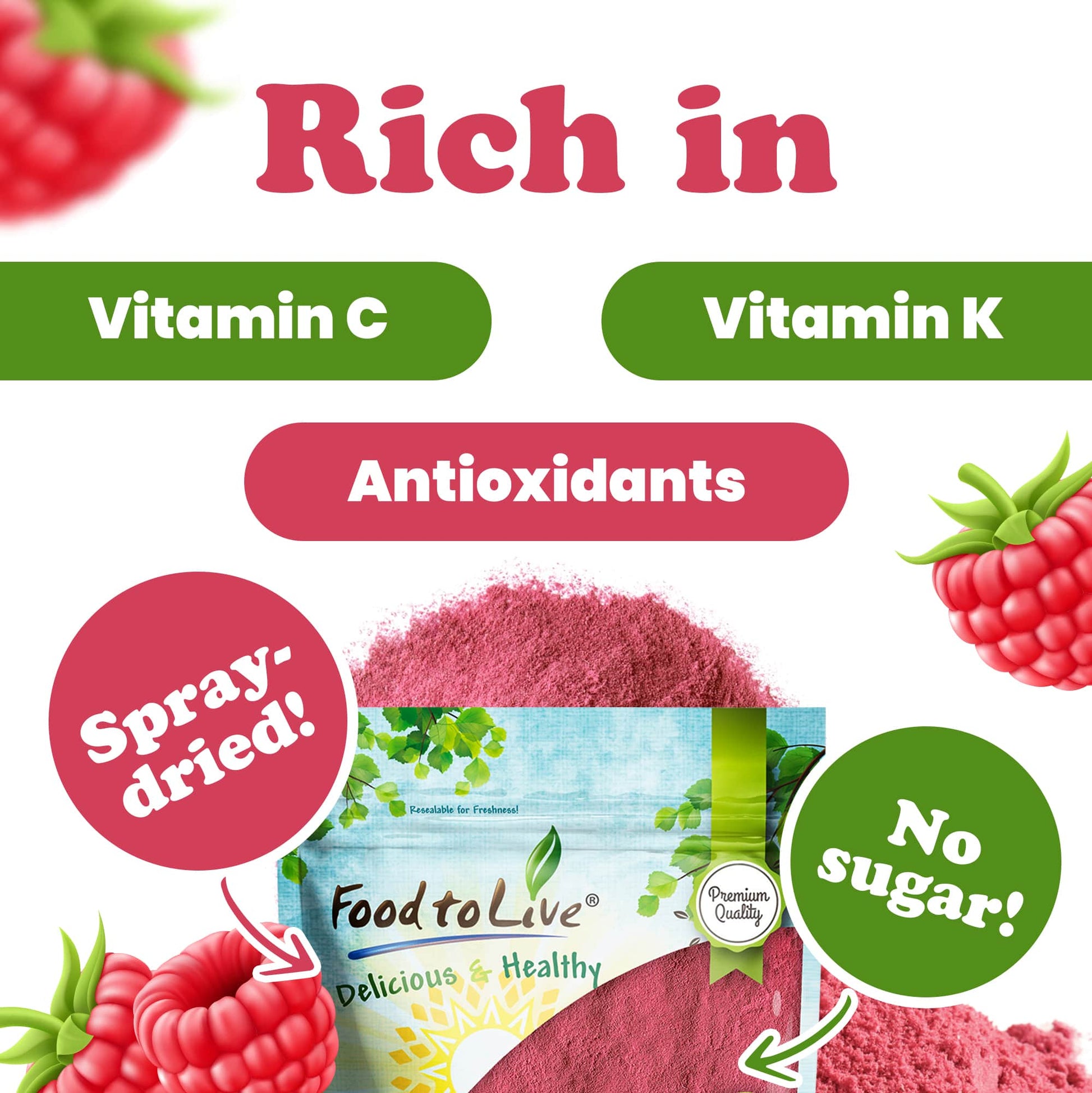 ✔️NUTRIENT-RICH BLEND: Packed with vitamins C and K, this raspberry powder from Food to Live is a great addition to your daily routine. It includes maltodextrin for a smooth and versatile texture.