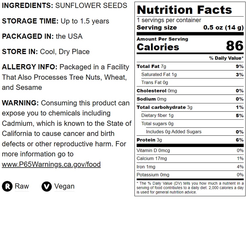 Raw Sunflower Seeds in Shell - by Food To Live