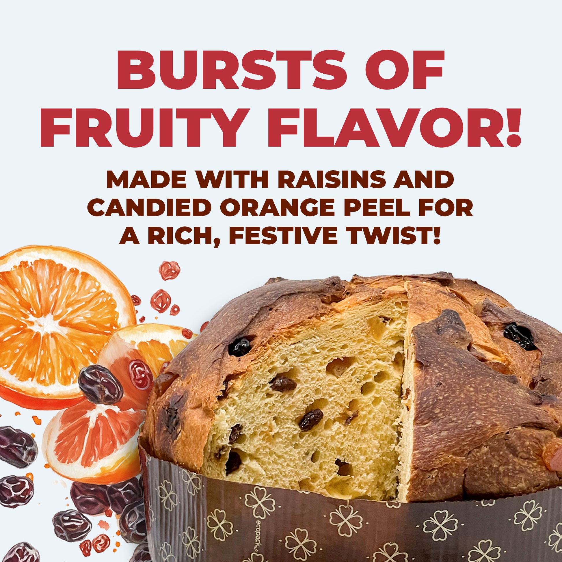 Want to elevate your panettone experience? Try warming it slightly in the oven (300°F for 5-7 minutes) to enhance its aroma and softness. Slice gently with a serrated knife and serve with a drizzle of honey or a dollop of whipped cream for an elegant dessert.