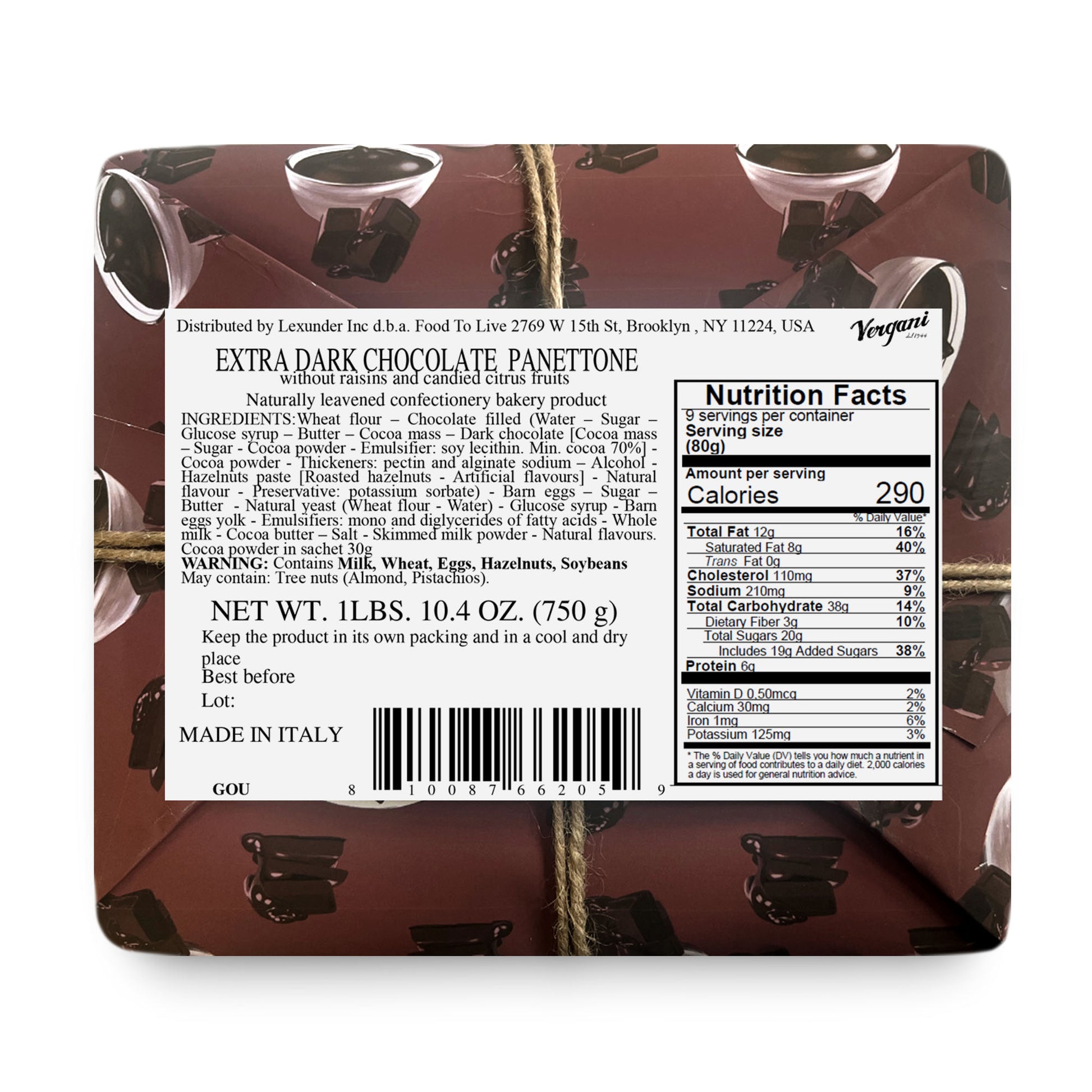 Vergani Extra Dark Chocolate Panettone - 750g (1.65 lb)