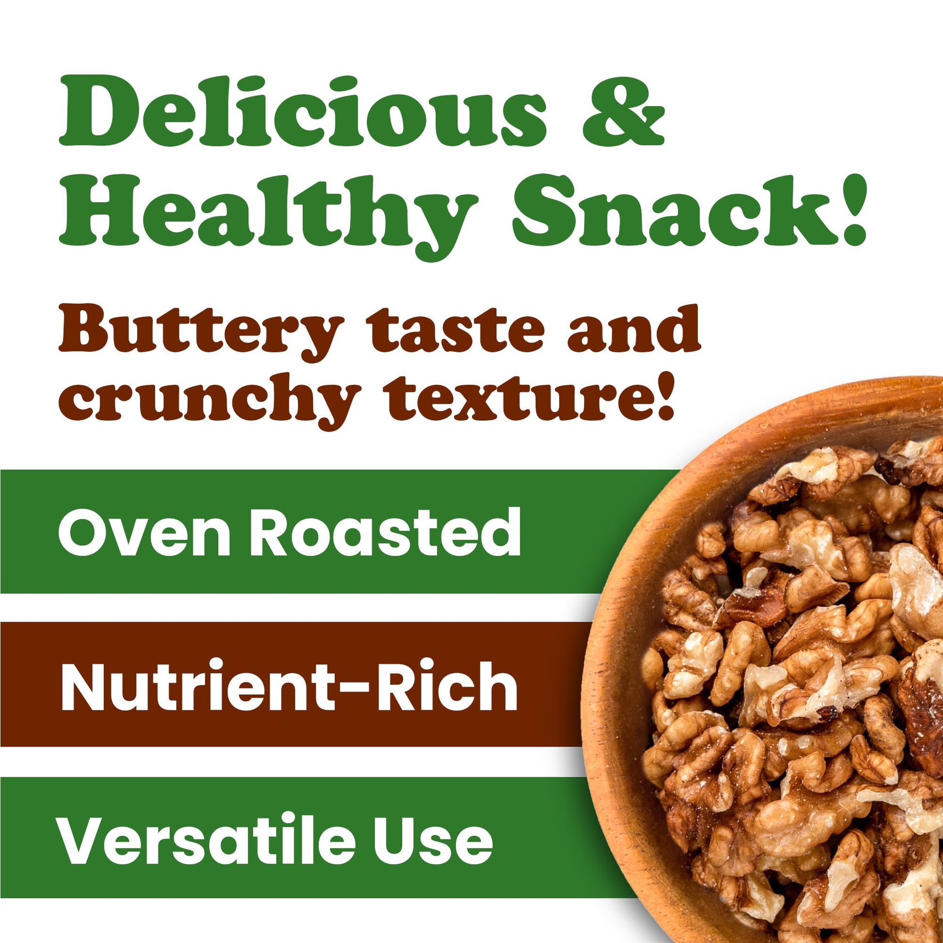 These roasted walnut halves and pieces are perfect for snacking on their own or pairing with dried fruits for a quick energy boost. They can be sprinkled over salads, stirred into oatmeal, or added to baked goods like brownies, cakes, and cookies. Walnuts also pair wonderfully with cheeses, roasted vegetables, and grain dishes, bringing flavor and crunch to a variety of culinary creations.