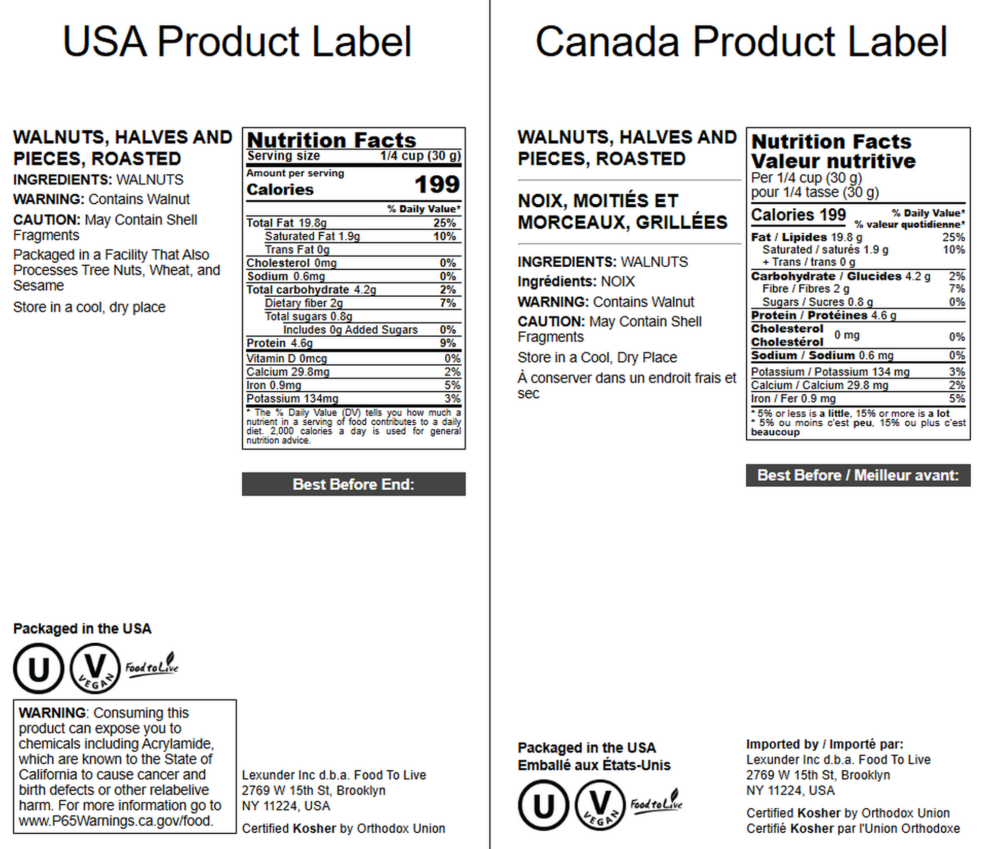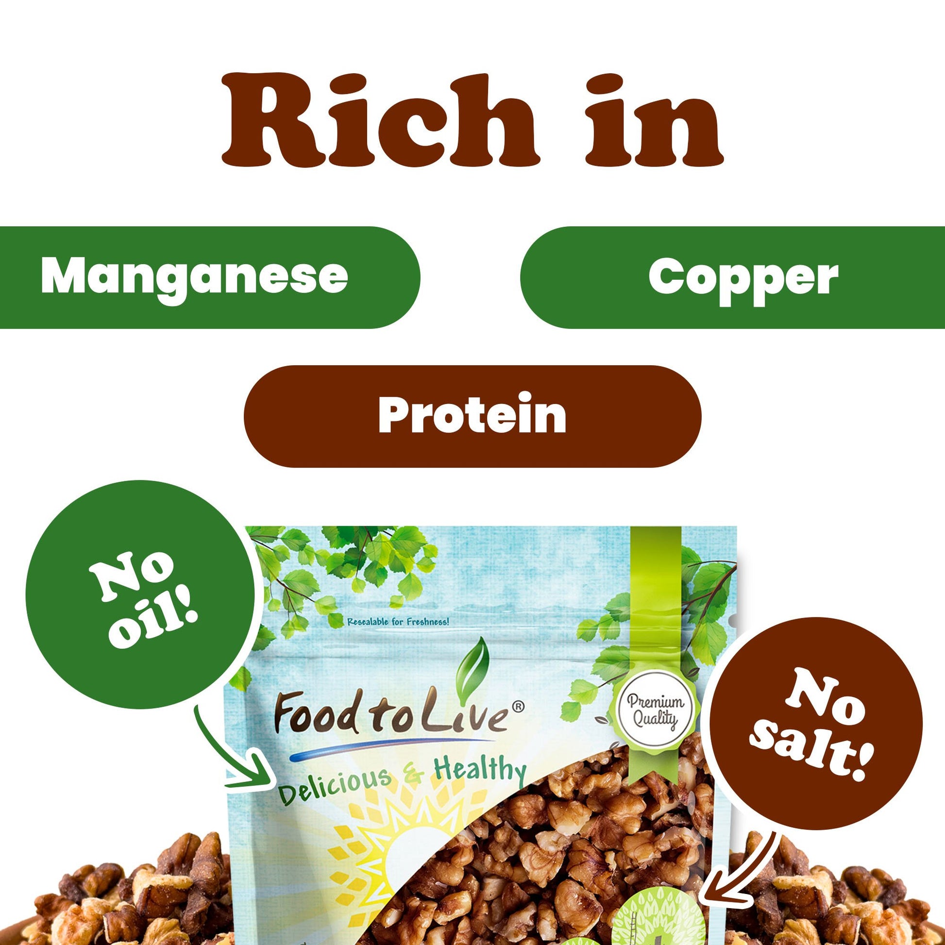 Walnuts, Halves and Pieces, Roasted – Vegan, Kosher, Bulk – by Food to Live